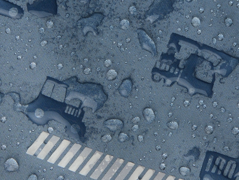 Magic fabric ændrer sig, når det bliver vådt, ved at et fint print kommer til syne. Softshellmaterialet har samtidig en vandafvisende overflade og god åndbarhed. Jakken er behandlet med BIONIC-FINISH ECO og fremstillet uden fluorstoffer.