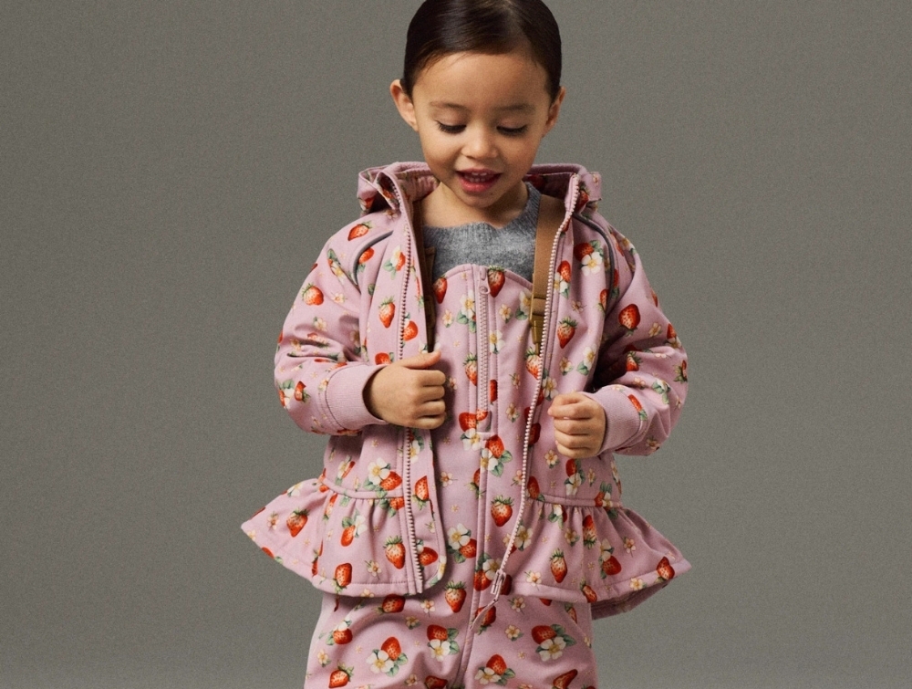 Name It softshelljakke i rosa nuance med jordbærprint på barnName It softshelljakke i rosa nuance med jordbærprintName It softshelljakke med fleecefor og lynlåsvagtName It softshelljakke med ribkant ved ærmerName It softshelljakke set bagfra i rosa nuance