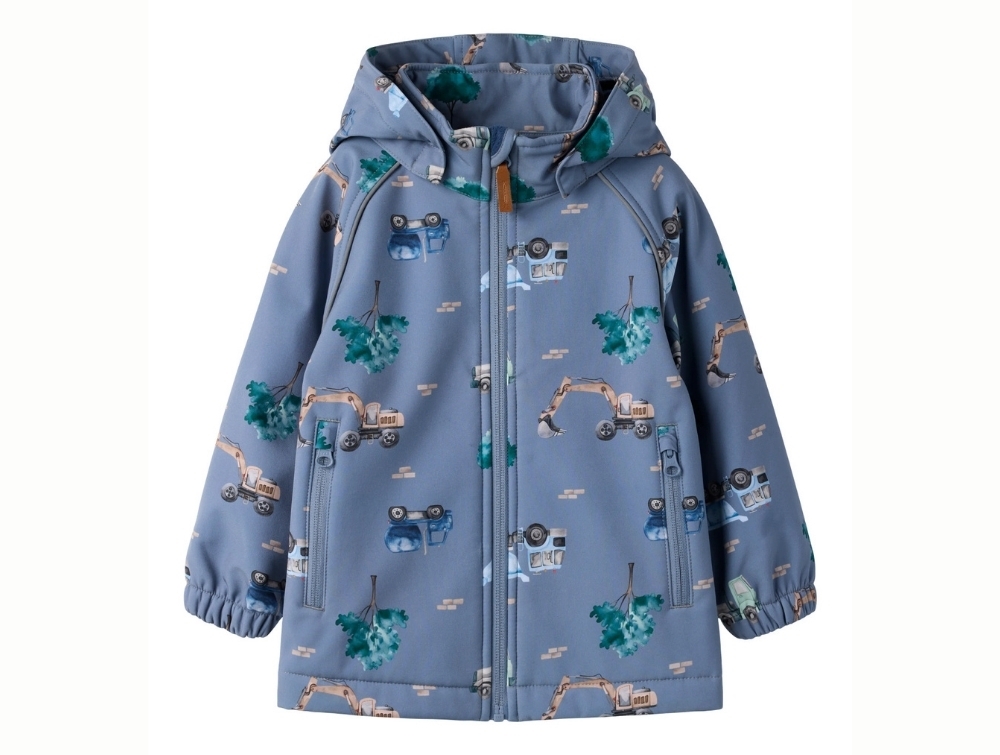 Name It softshelljakke i blå nuance med arbejdsbilprint og hætte