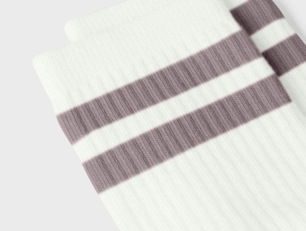 2-pak hvide sokker fra Name It med striber i lyserød og lilla – et sødt og sporty sæt til hverdagens basisgarderobe.
