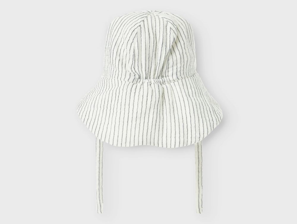 Solhat fra Name It i råhvid med blå striber (cloud dancer/navy blazer).