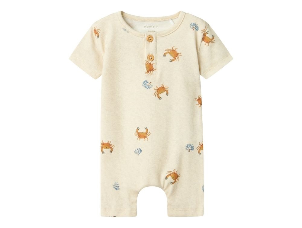 Sommerdragt i beige (peyote melange) med print af krabber fra Name It.