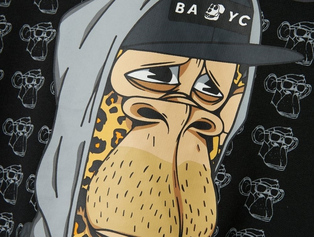 Sweatshirten har hætte, lange ærmer og ribkanter. Den er lavet i en blød, børstet sweatkvalitet med glat yderside og en lun inderside. Printet forestiller en figur fra det populære NFT-univers Bored Ape Yacht Club og bærer titlen “Bored of Directors” – en humoristisk reference til et “direktørhold” uden meget at tage sig til.