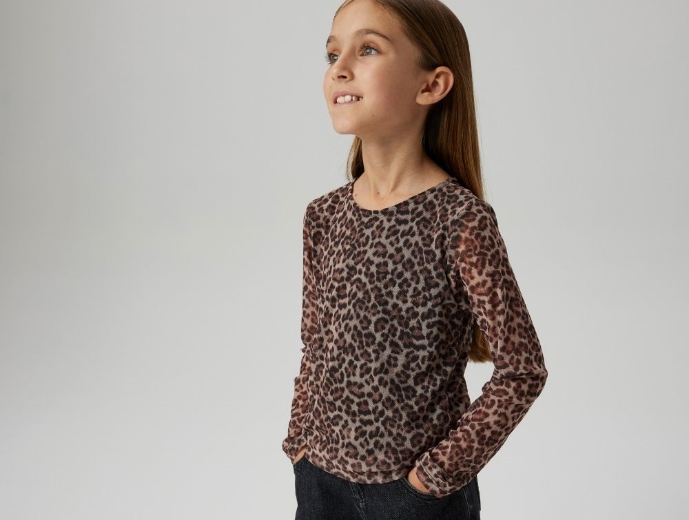 Sort langærmet top fra Name It med allover dyreprint i let meshkvalitet.