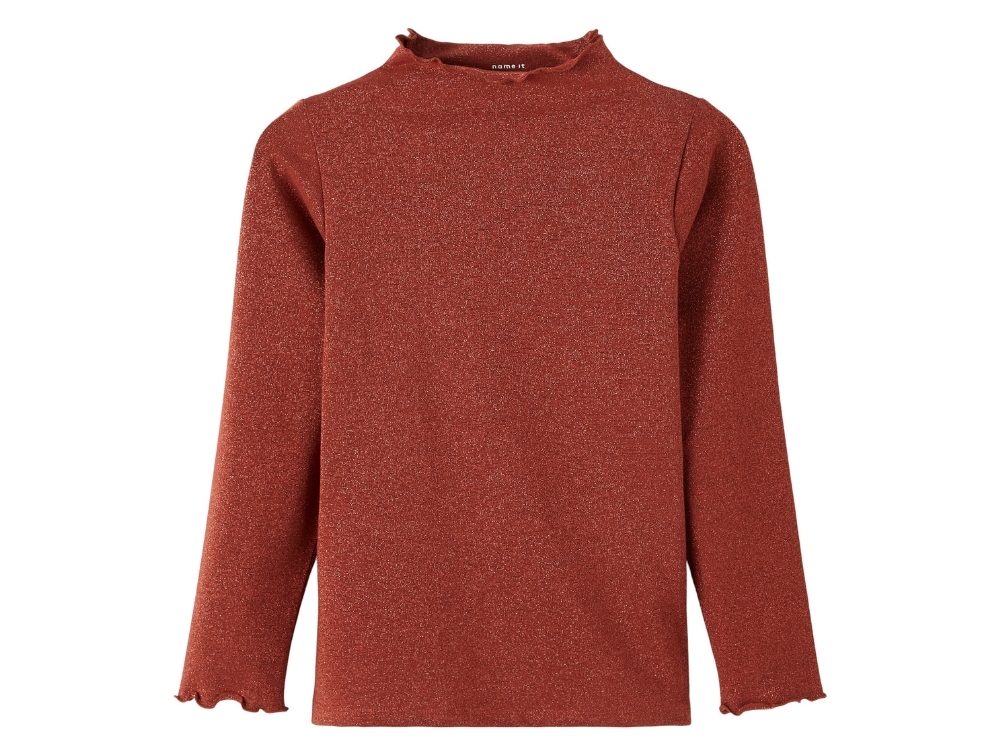 Langærmet top i farven spiced apple med glitter fra Name It.