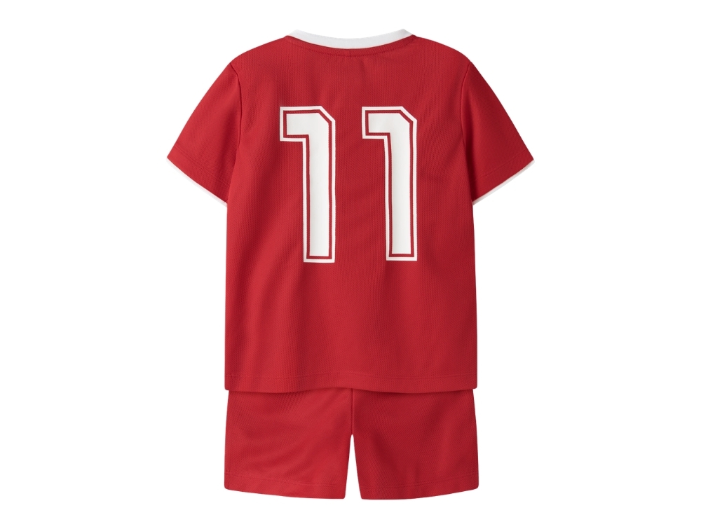 Sportssæt i rød nuance (true red) fra Name It med Danmark print og nummerdetaljer.