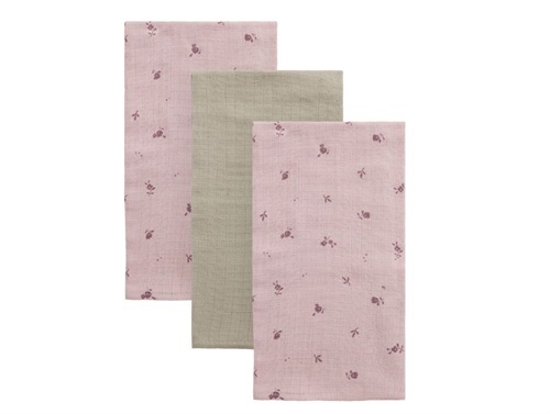 3-pak stofbleer fra Name It i 100% økologisk bomuld i lyselilla/rosa og beige nuancer.