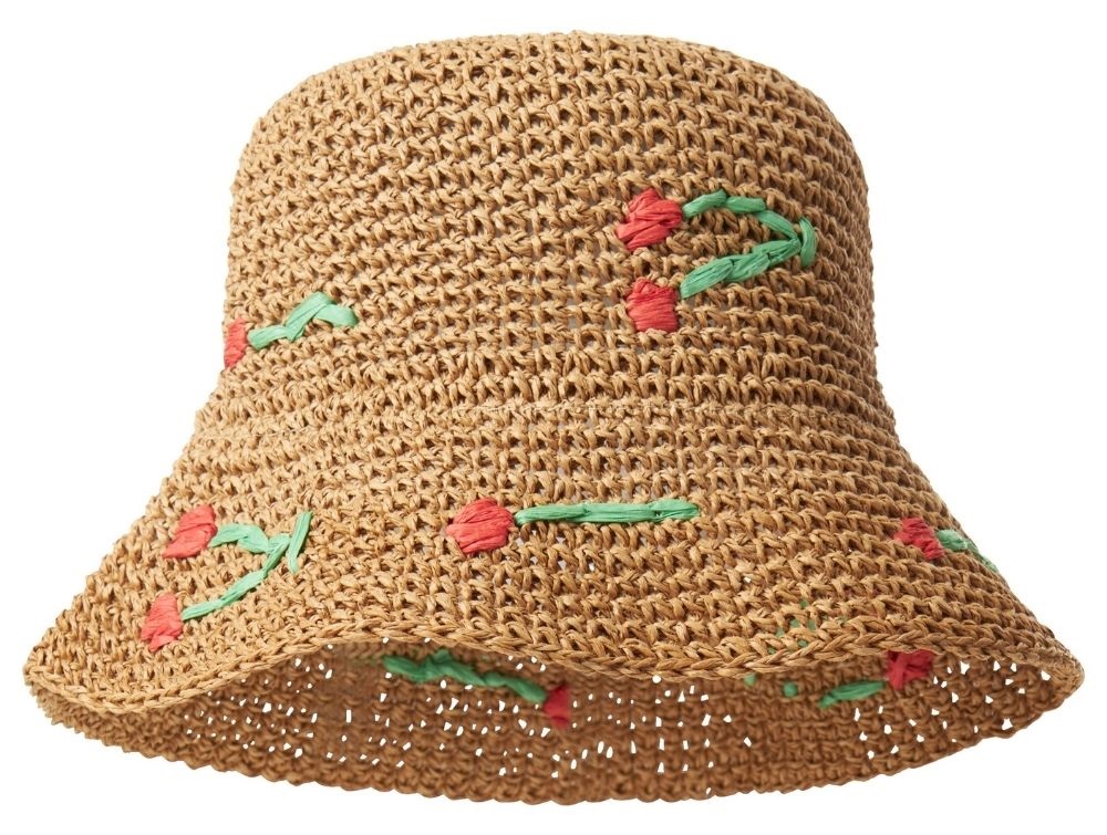 Designet har en bred skygge, der giver skygge til ansigtet, mens de små broderede kirsebær tilføjer et sødt og sommerligt udtryk.