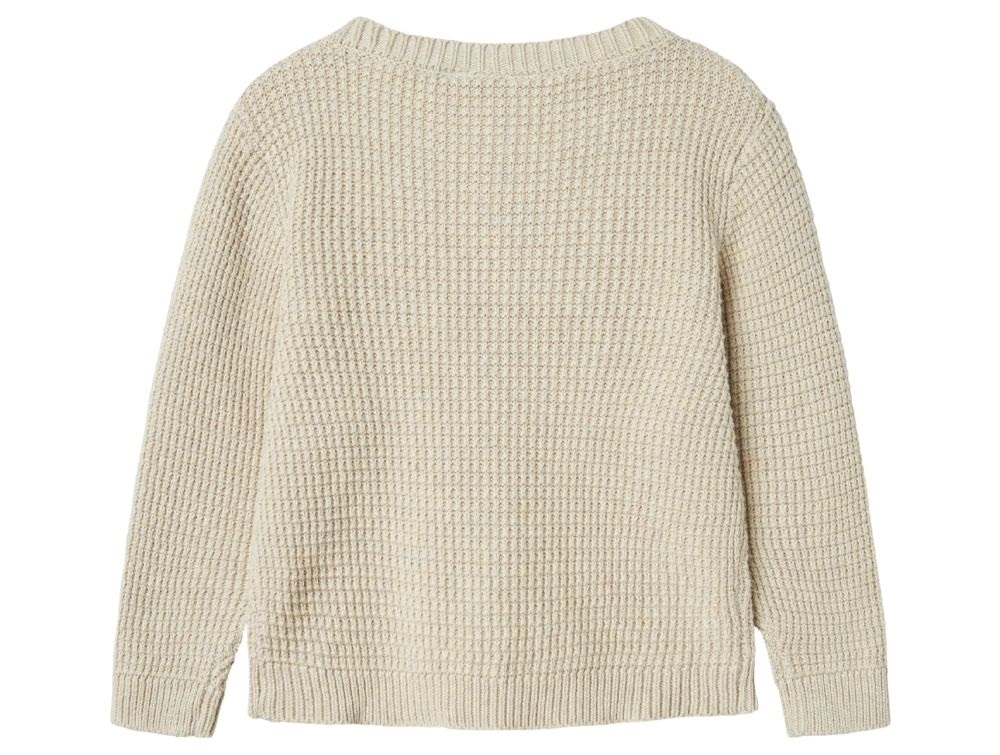 Strikcardigan i meleret beige (peyote melange) med isvaffelbroderi fra Name It.