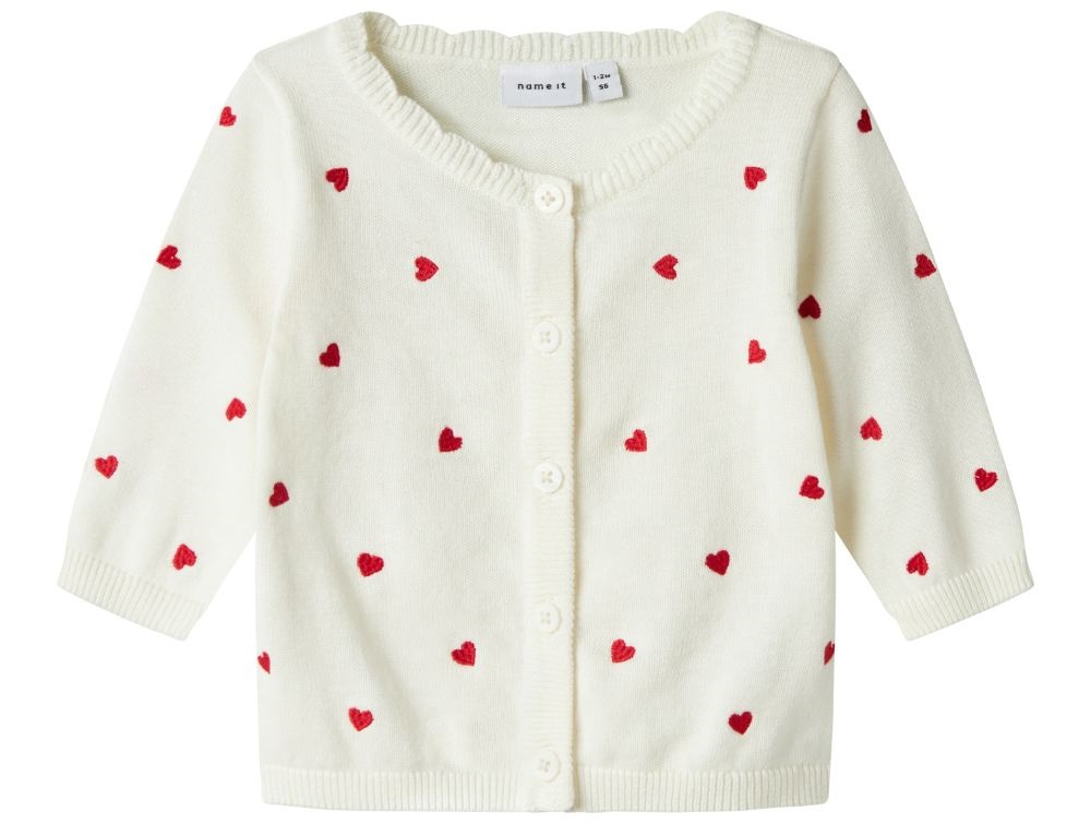 Name It strik cardigan cloud dancer med hjertebroderi