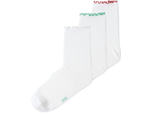 Hvid 3-pak strømper med grøn og rød detalje fra Name It