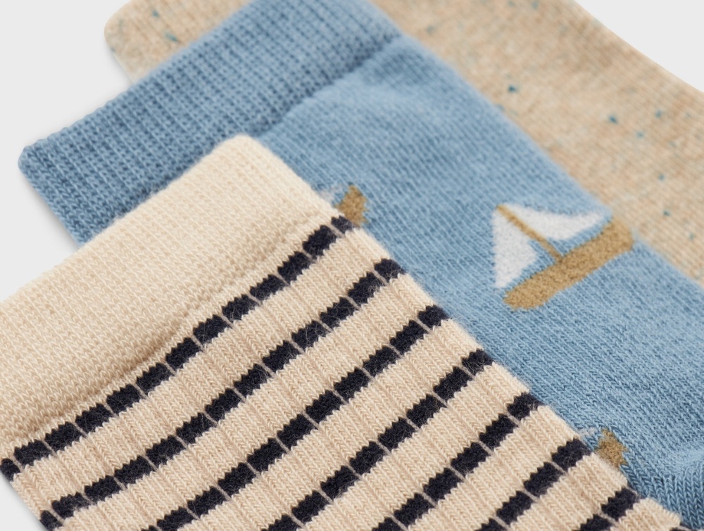 Name It strømper i beige og blå nuance 3-pak med sejlskib