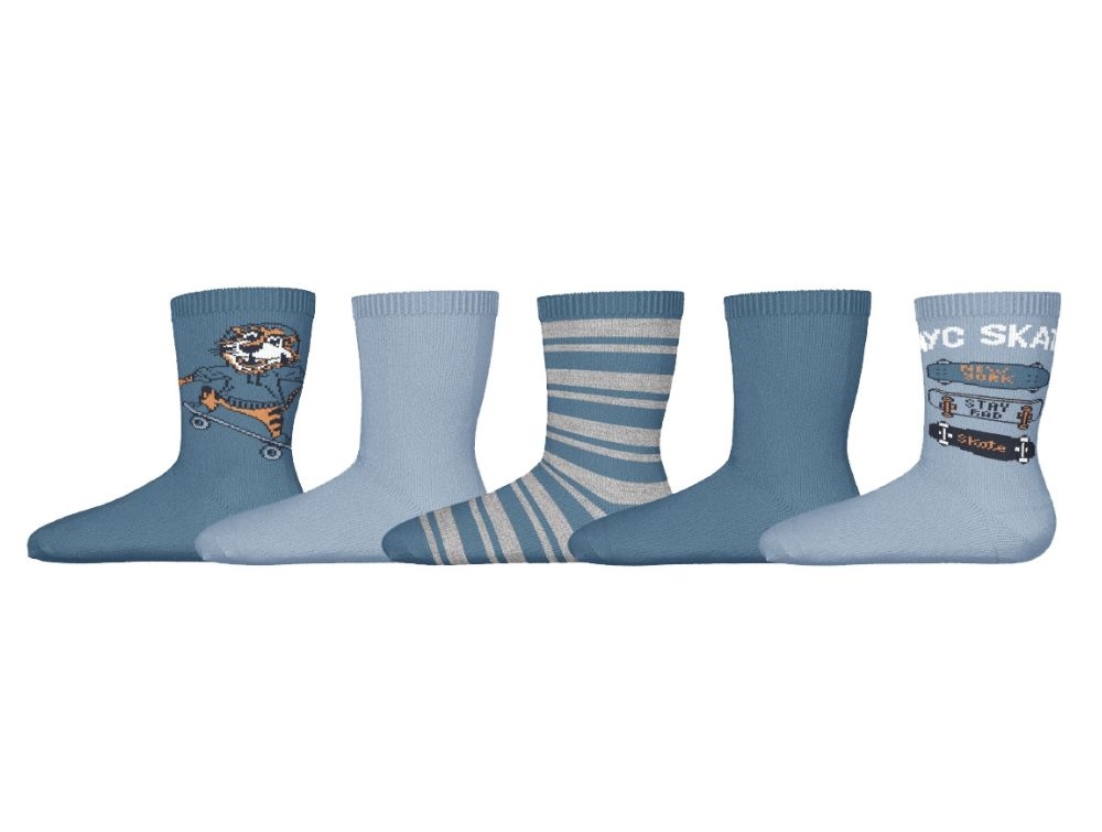 Strømperne er lavet i en blød og strækbar kvalitet med økologisk bomuld. Pakken indeholder forskellige motiver som skateboard, dyr og striber – alle med behagelig elastik i skaftet.