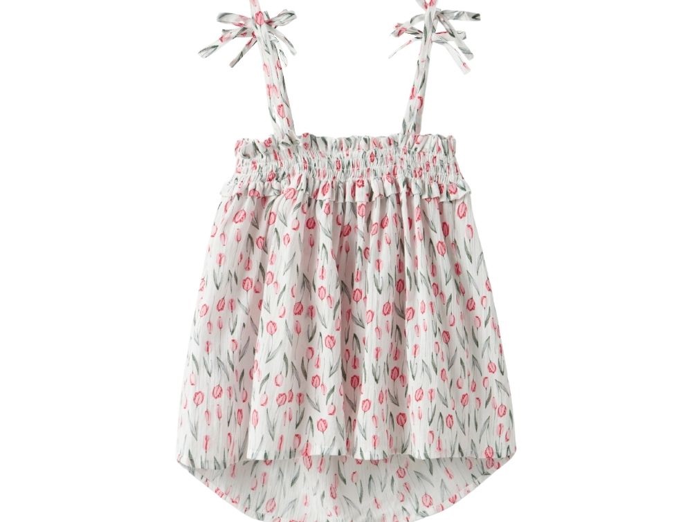 Sommertop fra Name It med fint blomsterprint og sløjfedetalje.