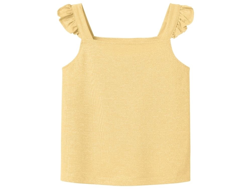 Gul kort stroptop fra Name It med glitter og små flæsedetaljer.