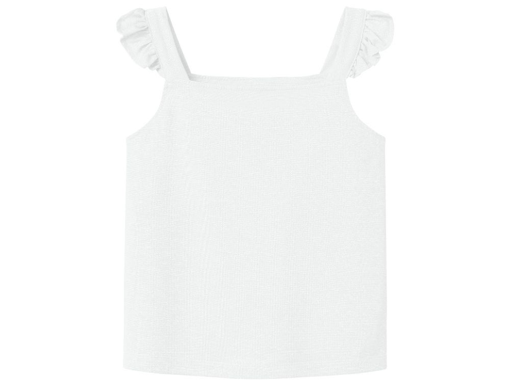 Hvid kort stroptop fra Name It med glitter og små flæsedetaljer.