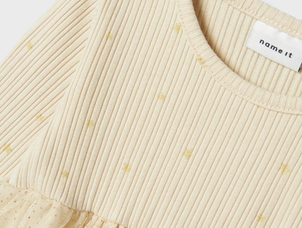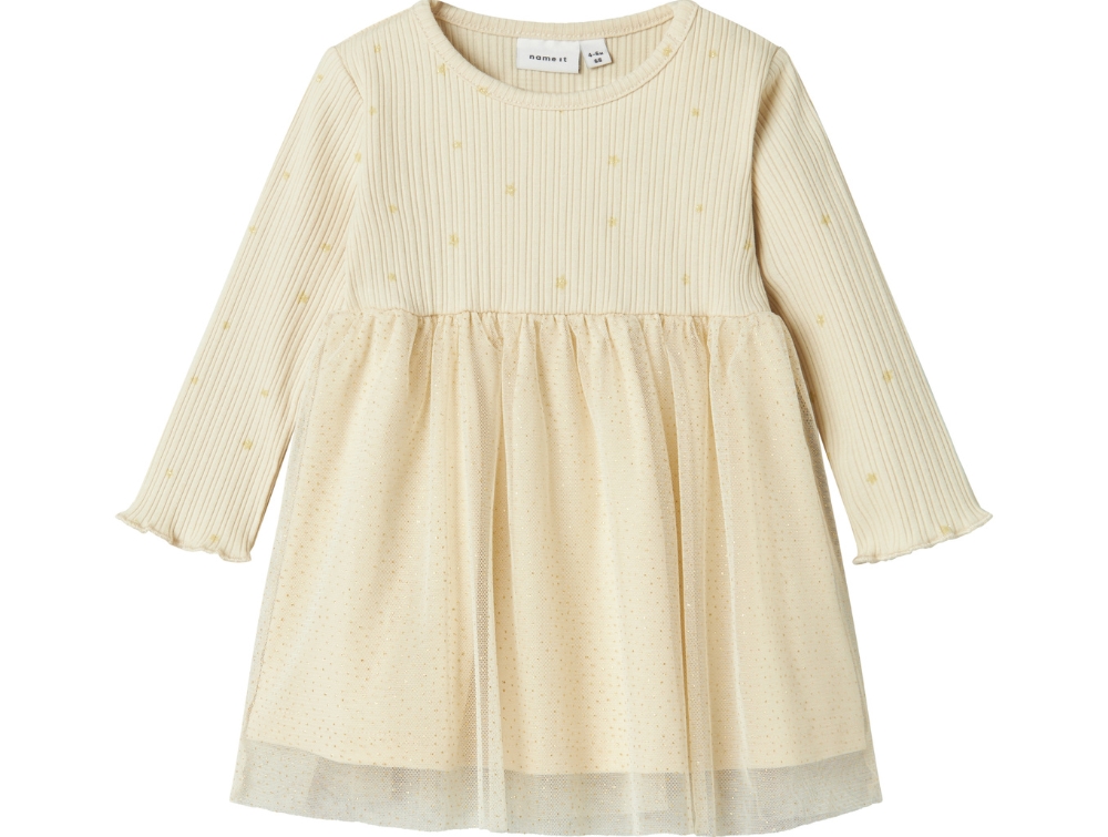 Babykjole i farven summer sand med glitter tylskørt og stjerner på overdelen fra Name It.