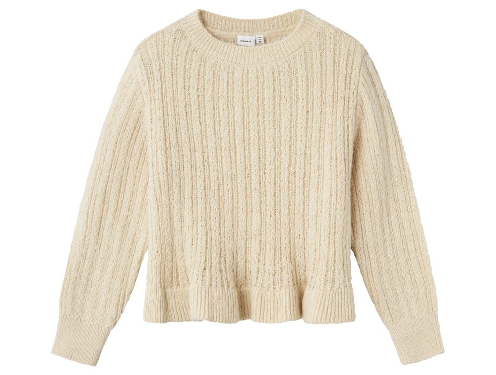 Super fin strik i farven summer sand med flæsedetalje fra Name It.