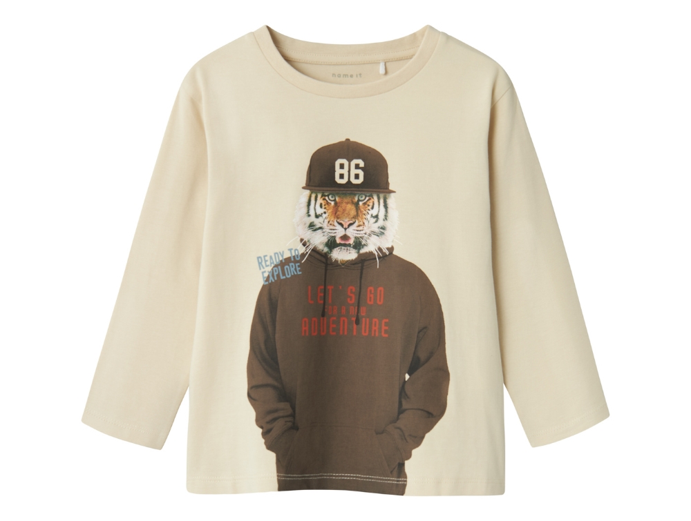 Langærmet top i farven summer sand med tigerprint fra Name It.