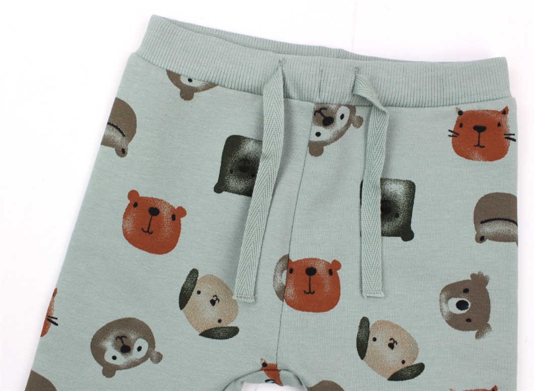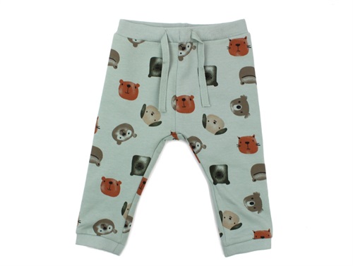 Bløde sweatbukser i farven iceberg green med dyreprint fra Name It.