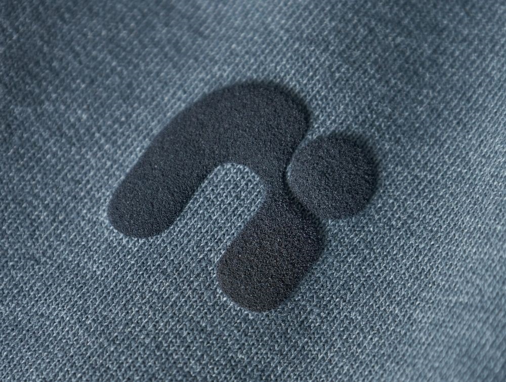 Cardiganen har hætte og lynlås, samt halve kængurulommer foran og et lille mørkeblåt logoprint på brystet.