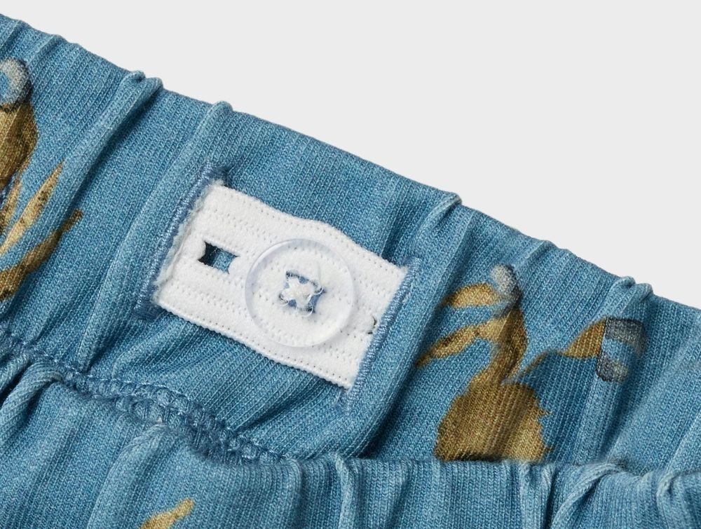 Sweatpants i blå (spring lake) med krabbeprint fra Name It.