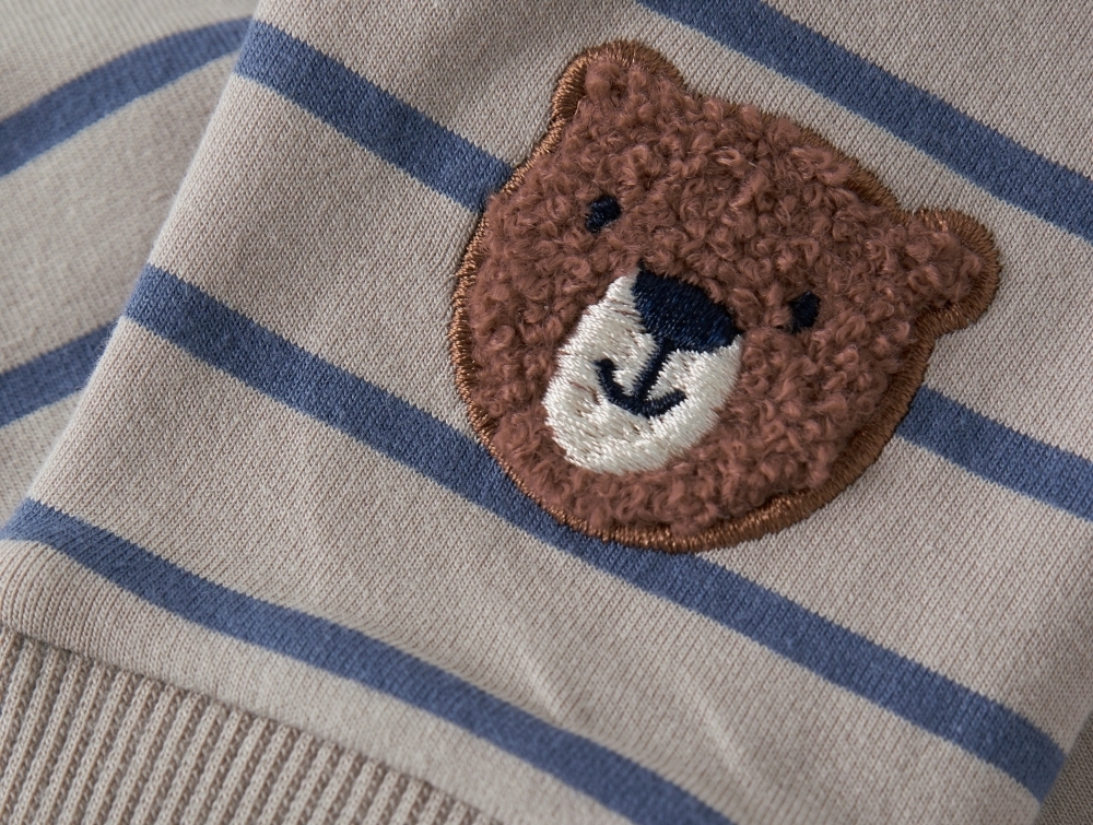 • Stribet design med bamsebroderi