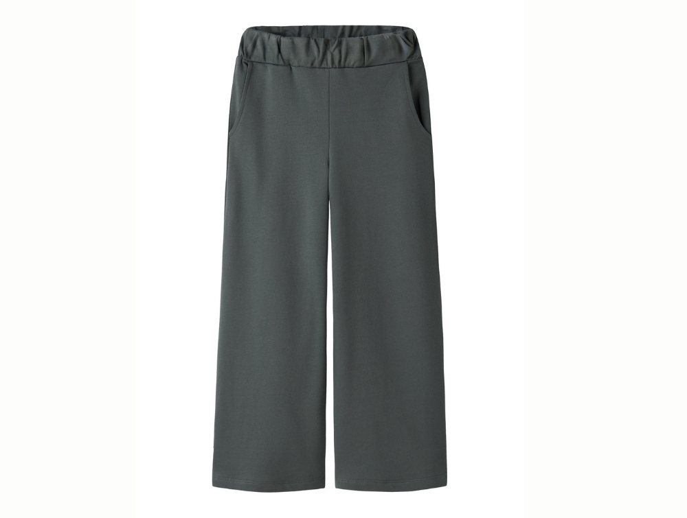 Sweatpants i mørk grågrøn nuance (urban chic) fra Name It med brede ben og enkel silhuet.