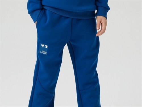 Blå sweatpants fra Name It i blød sweatkvalitet med elastik i taljen og fast snor.