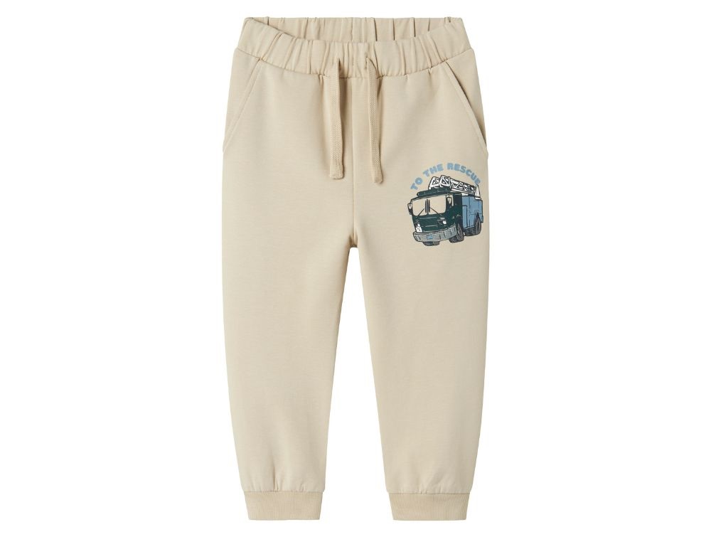 Sweatpants i beige (peyote) med brandbil fra Name It.
