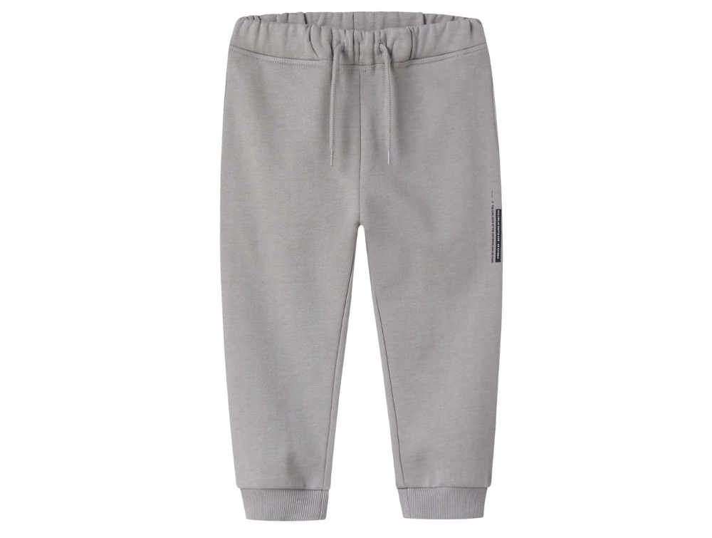 Sweatpants i grå nuance (rock ridge) fra Name It med diskret logo detalje på benet.
