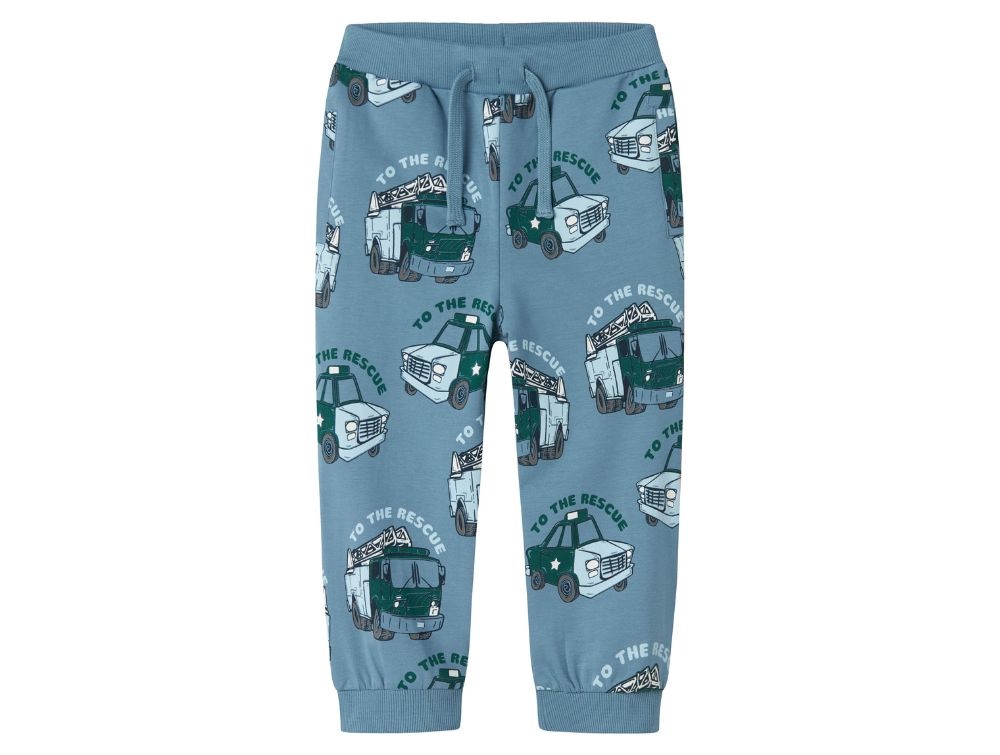 Sweatpants i blå (spring lake) med redningskøretøjer fra Name It.