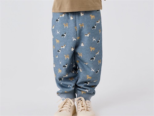 Sweatpants i blå (spring lake melange) med hundeprint fra Name It.
