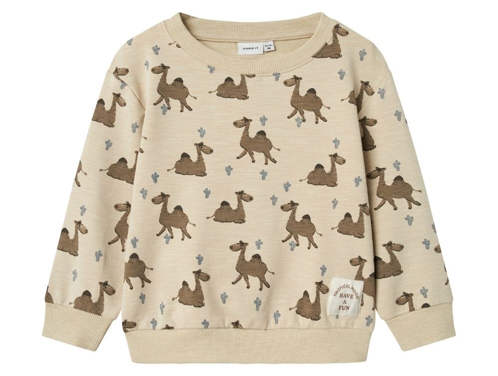 Sweatshirt i beige (peyote) med print af dromedarer fra Name It.