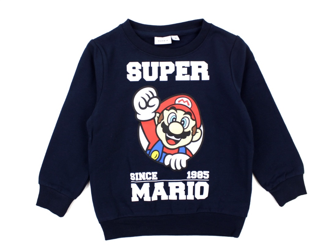 Sweatbluse fra Name It i farven dark sapphire med Super Mario-print.