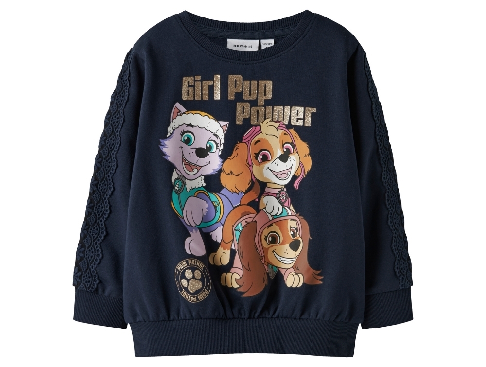 Name It sweatshirt i mørkeblå med Paw Patrol print og blondeærmer