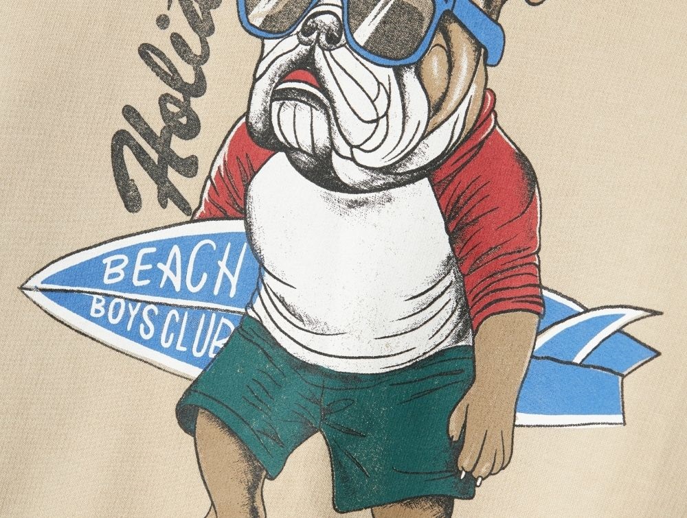 Blød sweatshirt i sandfarvet nuance med et stort, iøjnefaldende print foran. Modellen har rund hals, lange ærmer og ribkanter. Fremstillet i en ubørstet sweatkvalitet med glat overflade og løkker på indersiden, som giver en behagelig fornemmelse mod huden. Et afslappet og stilrent valg til hverdagen.
