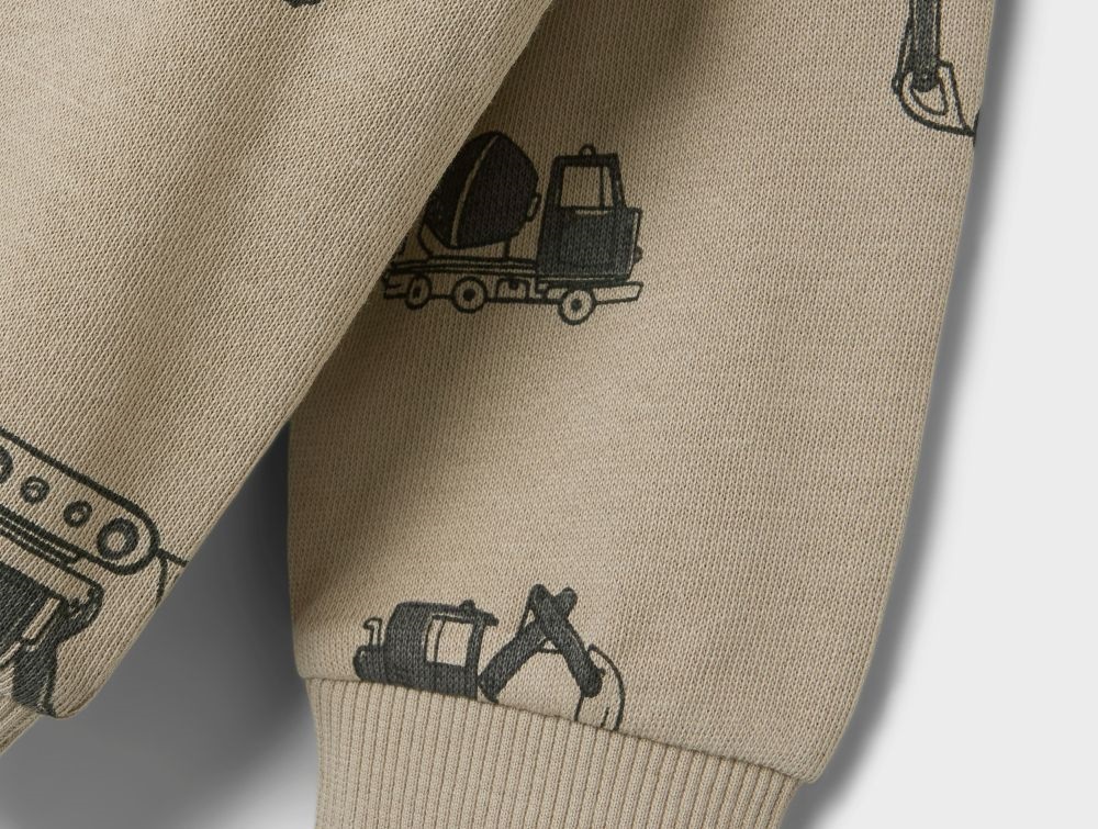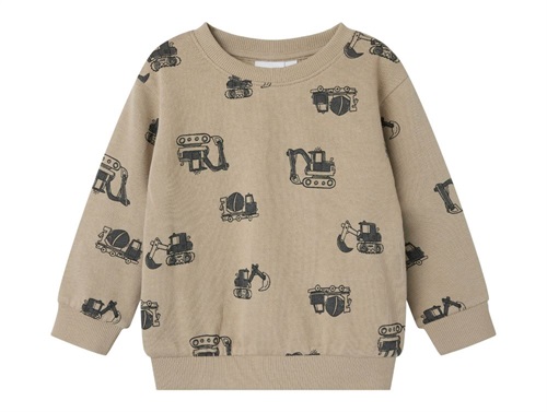 Sweatbluse i beigebrun (pure cashmere) med byggemaskineprint fra Name It.