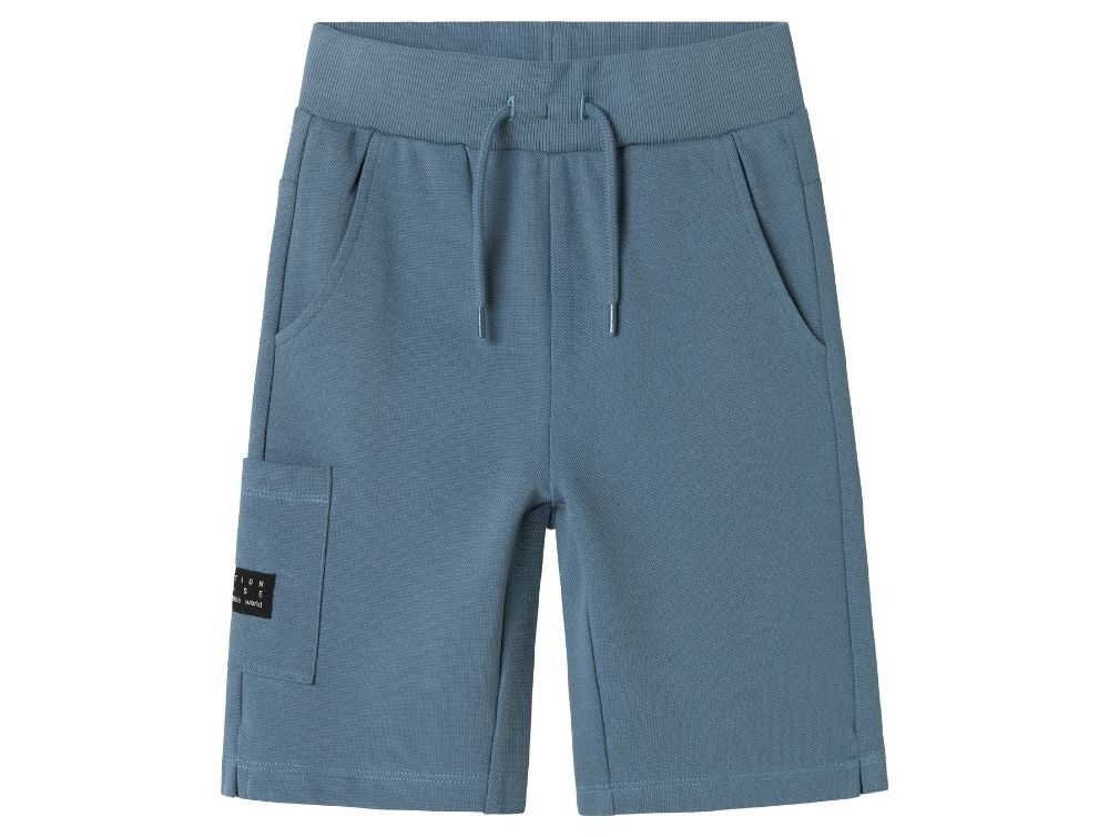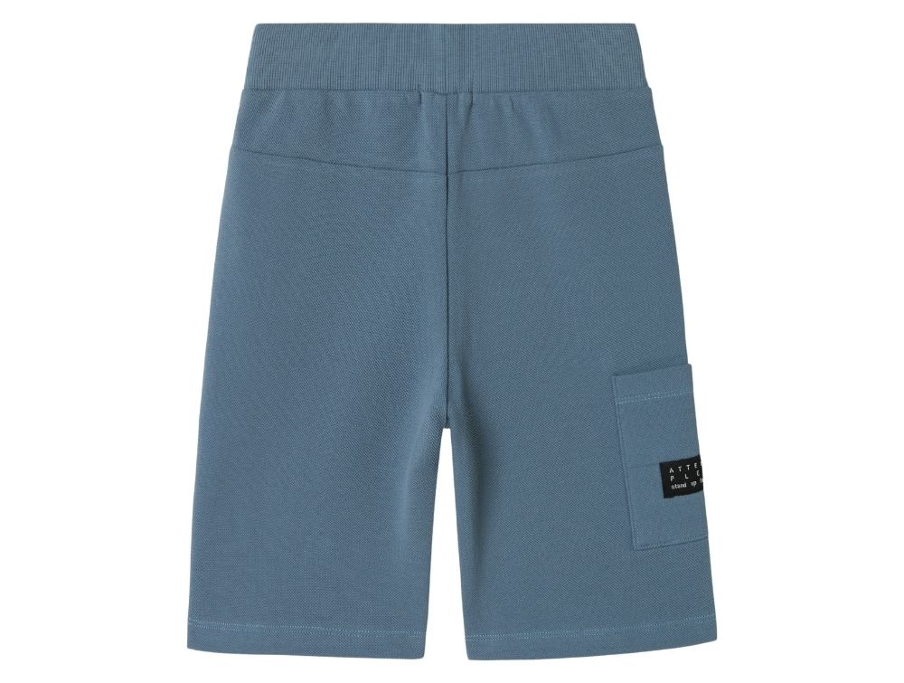 Blå sweatshorts fra Name It med lommer 13230041Blå sweatshorts bagfra  med lommer fra Name It 13230041Justerbar knaphulselastik i blå sweatshorts fra Name It 13230041 blue mirage