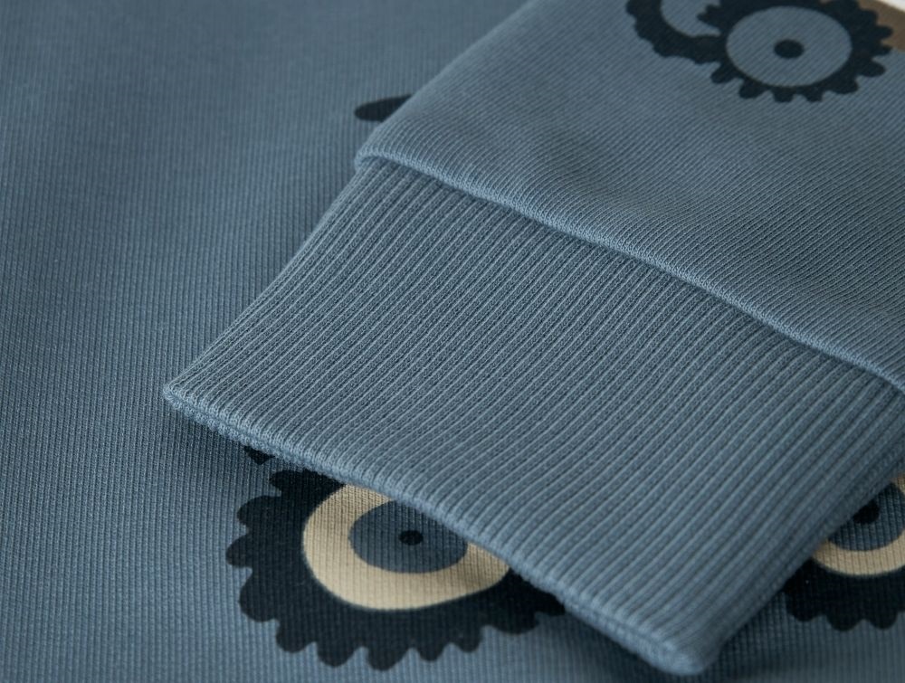 Blå sweatshirt med traktorprint fra Name It 13247018 blue mirageBlå sweatshirt med traktorprint fra Name It 13247018 blue mirage bagfraRibmanchet på blå sweatshirt med traktorprint fra Name It 13247018 blue mirage