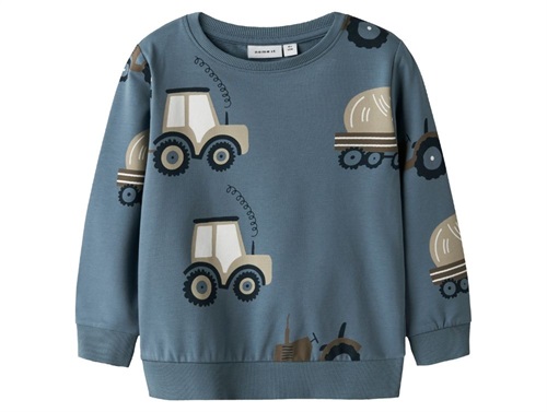 Sweatshirt i blå (blue mirage) med print af traktorer fra Name It.