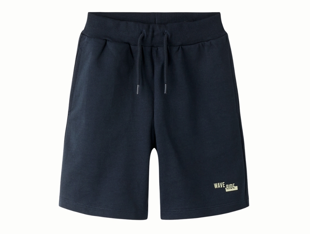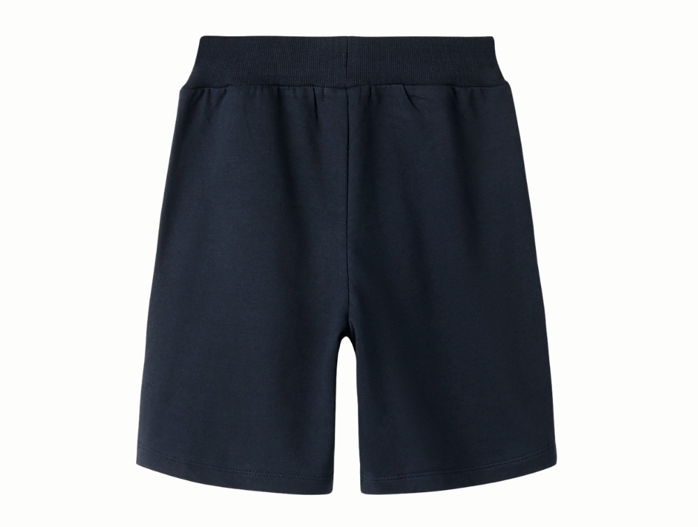 Name It sweatshorts i navy nuance salute med print på benetName It sweatshorts i navy nuance salute med elastik i taljenName It sweatshorts i navy nuance salute set bagfra