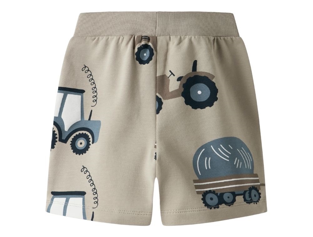 Sweatshorts i sandfarvet (pure cashmere) med print af traktorer fra Name It.