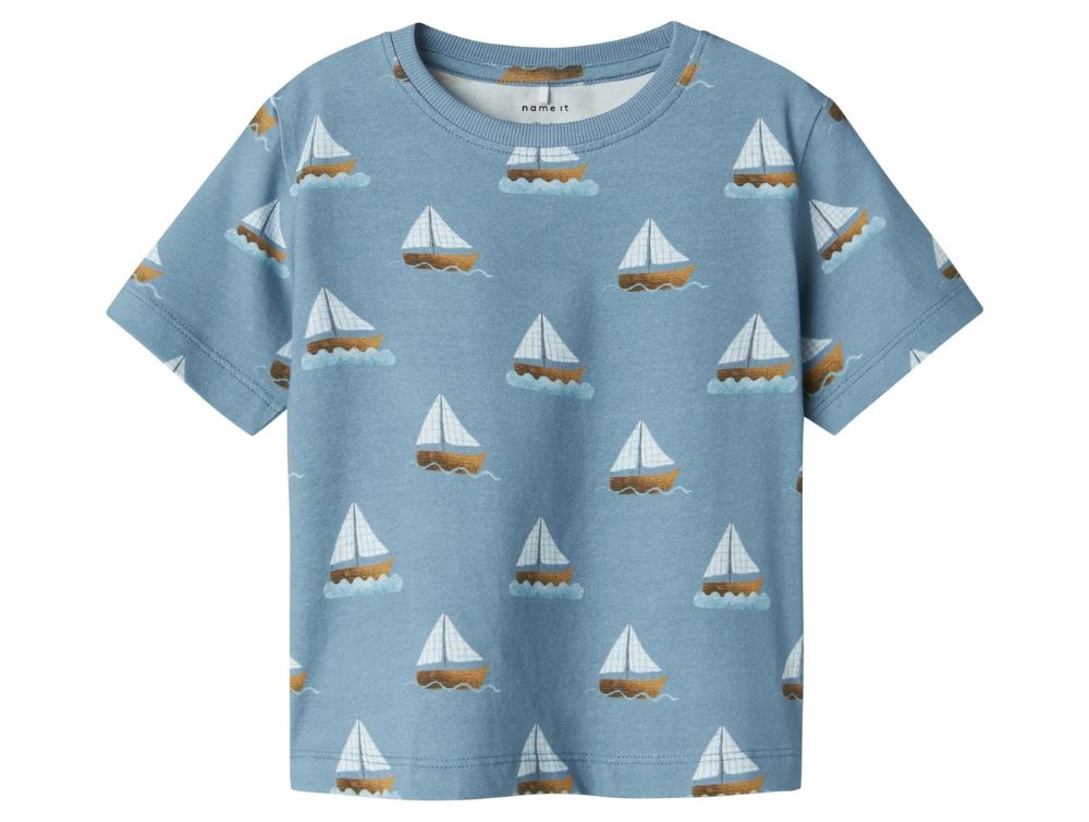 Blå (spring lake) kortærmet t-shirt med bådprint fra Name It.