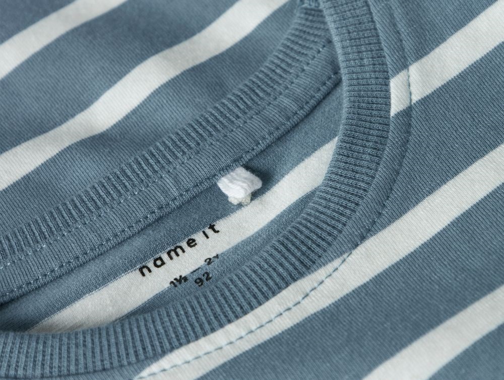 Blå og hvid stribet T-shirt fra Name It  13241255 spring lakeHalsudskæring med rib på blå og hvid stribet T-shirt fra Name It  13241255 spring lake