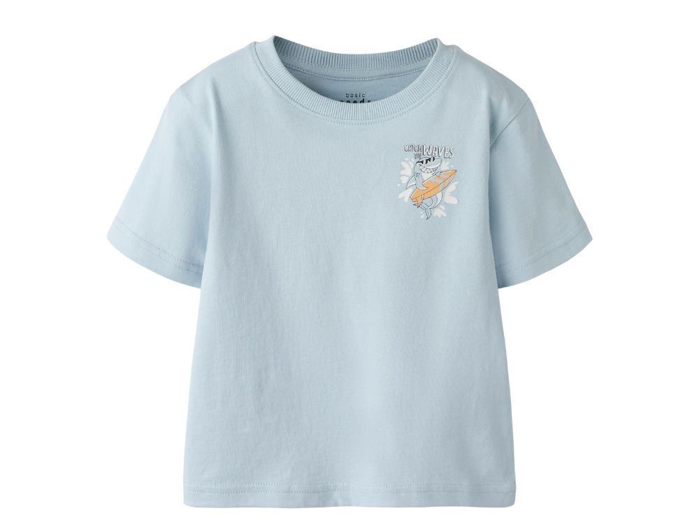 T-shirt i lyseblå nuance med surfende haj-print fra Name It.