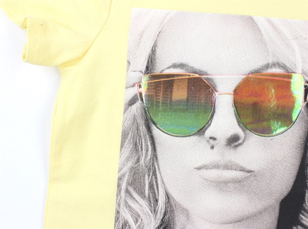 Kortærmet t-shirt i farven double cream med print af pige med solbriller fra Name It.