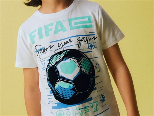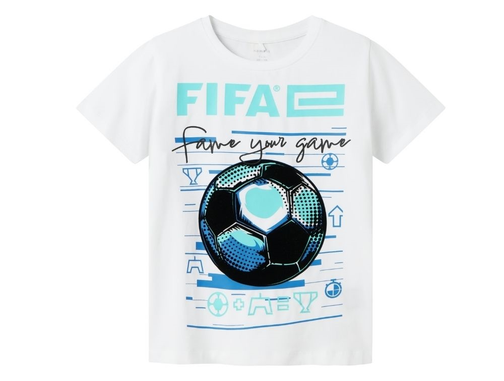 Kortærmet T-shirt i hvid (bright white) med FIFA-print fra Name It.