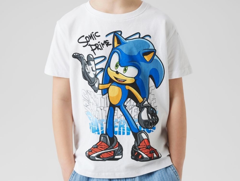 Hvid T-shirt med ikonisk Sonic-print fra Name It: