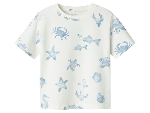 Hvid (cloud dancer) kortærmet t-shirt med havprint fra Name It.
